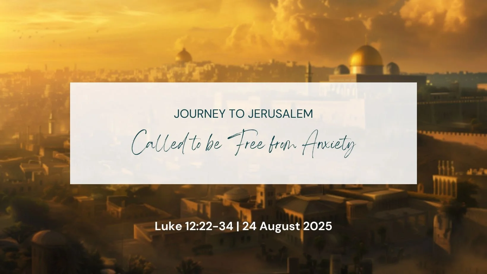 Called to be Free from Anxiety Gospel of Luke Aug 24 Written By Chris . Luke 12:22-34 | Ptr. Chris Evangelista Journey to JerusalemPtr. Chris Evangelista Chris .